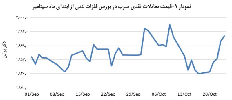بهای نقدی سرب 0.3 درصد افزایش داشت و دیروز 24 اکتبر (2 آبان ماه)، میزان قیمتی 1,979.0 دلار بر تن را رقم زد. این در شرایطی است که طی یک هفته اخیر، نرخ نقدی سرب به چنین سطحی نرسیده بود.اما، طی سیری صعودی، قراردادهای آتی سرب موفق شد بالاترین نرخ یک هفته گذشته، یعنی 2,018.0 دلار به ازای هر تن، را پشت سر گذاشت.