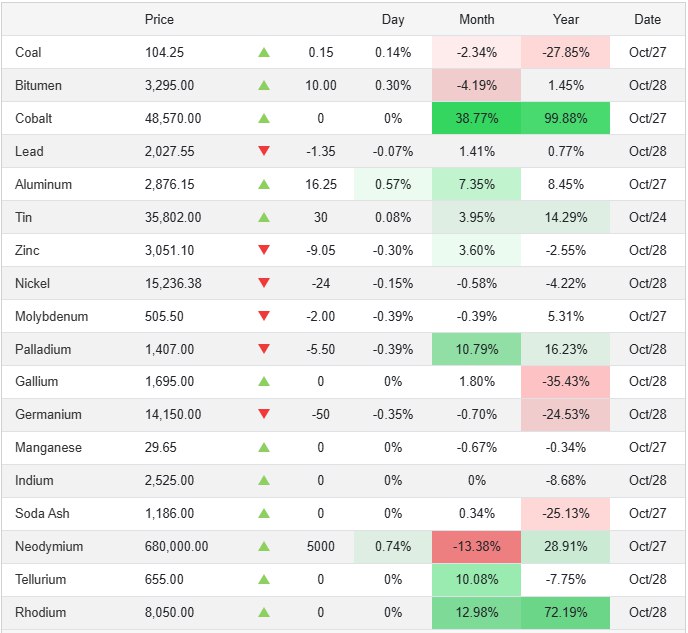 قیمت و تغییرات قیمت جهانی عناصر مهم و پر مصرف در صنعت: