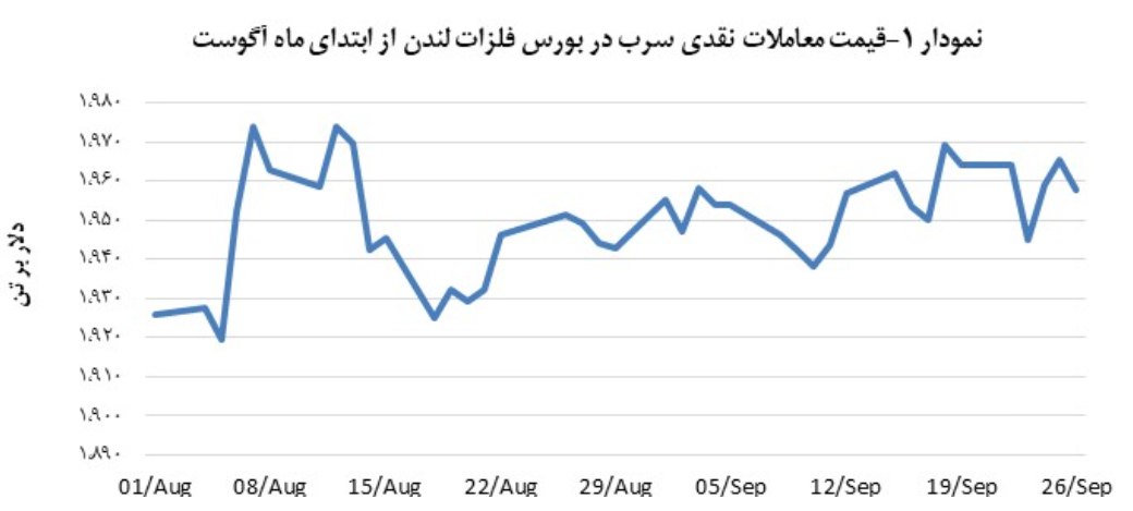 معاملات نقدی سرب با نرخ 1,957.5 دلار در هر تن جای گرفت؛ میزانی که در قیاس با روز پیش، افت 8.0 دلار بر تنی را نمایان میسازد و در معاملات 26 سپتامبر (4 مهر…