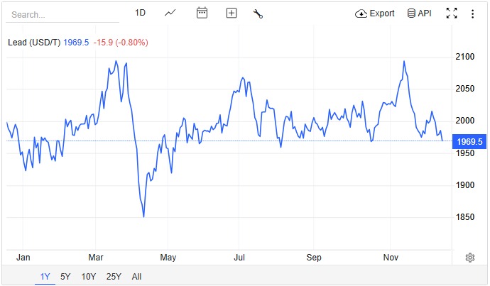 قیمت سرب در ۱۲ دسامبر ۲۰۲۵ به ۱٬۹۶۹.۵۳ دلار بهازای هر تن رسید که نسبت به روز قبل ۰.۸۰٪ کاهش نشون میده. طی یک ماه گذشته، قیمت سرب ۵.۱۷٪ افت کرده و در مقایسه با مدت مشابه سال…